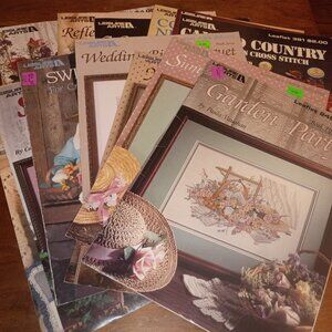 Lot of 13 different LEISURE ARTS counted cross stitch leaflets from the 1980s, a variety of themes but mostly Victorian. All are different, all excellent condition. I don't believe these have ever been used. Nostalgia for your needlecrafting...