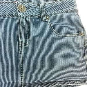 Lot of 2 Women's Adam Levine Distressed Mini Shorts & Hot Kiss Mini Jean Striped Skirt 7/8 (31" Waist). Skirt is 11" from top of waist to hem.
