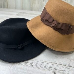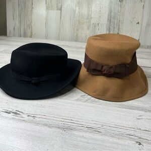 Lot of 2 Adam Smith Hats Womens 100% Wool Black Tan Beige Neutral, Both are MADE IN ITALY