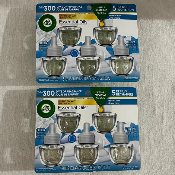 Lot of 2 Air Wick Scented Oil Refill Fresh Linen (5 Pack Each)
