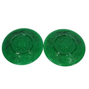 Lot of 2 Anchor Hocking Sandwich Plates Emerald Forest Green Vtg 4.5" Tableware