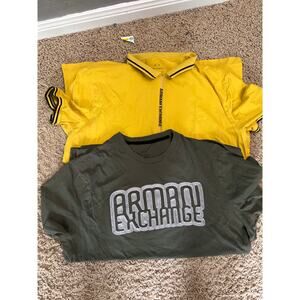 Lot of 2 Armani Exchange Shirts Men XL Green Yellow Short Sleeves Casual Preppy