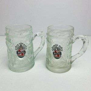 Vintage Becks German Beer Mugs with Molded Glass Grapevine Design. This is a set of 2. One stein is older and slightly different in tone. It also has some scratches on the logo - see pic.