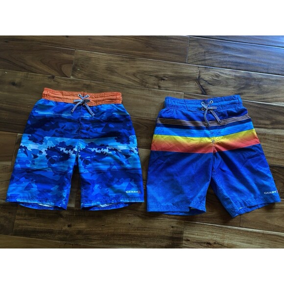 Lot of 2 Boys Swim Size 7/8 Blue Gerry Shorts Comfort Liner Youth #183