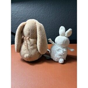 Lot of 2 Bunnies by the Bay Plush Stuffed Rabbit Shaggy White And Maileg Bunny