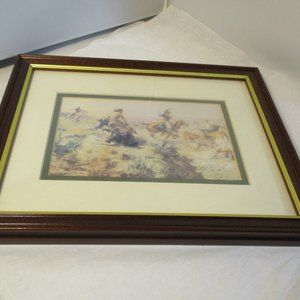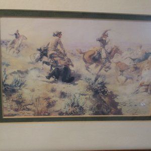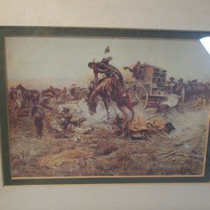 Lot of 2 C M Russell Framed Art Prints Old West Cowboys Horses