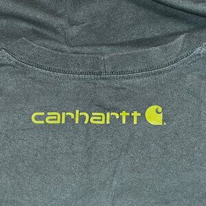 Lot of 2 Carhartt men's long-sleeved original fit t-shirts, size L, dark green with sleeve & back neck logo & cobalt blue with sleeve & back neck logo (logo is light grey), both only worn a few times.