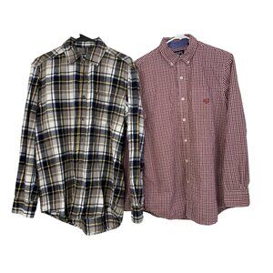 Lot of 2 Chaps Red & Faded Glory Plaid Flannel Button-Up Shirts S GUC 8870
