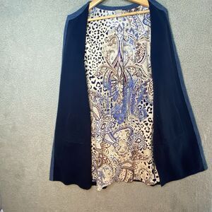 Lot of 2 Chicos Open Duster Cardigans Heather Blue & Black Jewel Sz 1 (Medium)