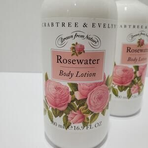 Lot of 2 Crabtree & Evelyn Rosewater Body Lotion 16.9 Oz 500 mL Bottles