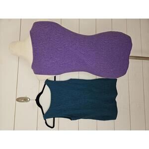 Lot of 2 Damask Medium 1-Teal blue & 1-Purple stretchy textured tank tops