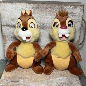 Lot of 2 Disney World Chip And Dale Plush Toy Stuffed Animal Beanie Chipmunk 10"