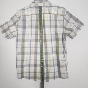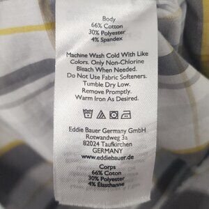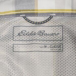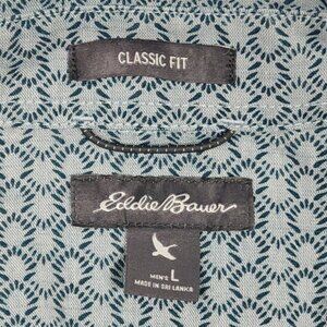 Get ready for any occasion with these Eddie Bauer men's shirts lot in size M and L. The classic fit and button-down collar make them suitable for travel, casual outings, or business meetings. These shirts are made of woven cotton fabric, which is easy to care for and perfect for all seasons.Featuring a multicolor check pattern on one shirt and a geometric subtle shape on the other, both featuring button accents, these shirts are a timeless addition to any wardrobe. They have a regular fit and are suitable for men with a chest size between 40" (medium shirt) and 45" (large shirt). The shirts are machine washable and made in Sri Lanka as part of the Eddie Bauer Classic product line. Get your hands on these versatile shirts today!