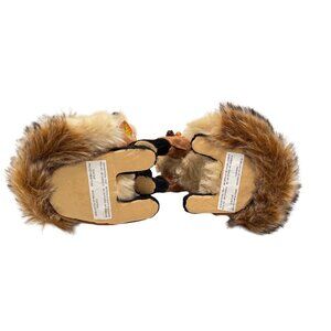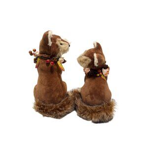Lot of 2 Fabric Covered Fluffy Fur Tailed Foxes With Floral Wreaths 10" & 8.5" t