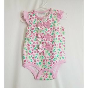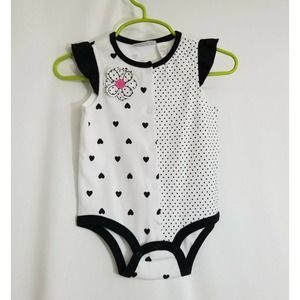 Lot of 2 First Impressions Black & White/Pink & Green Baby Romper Bodysuits 12 M.