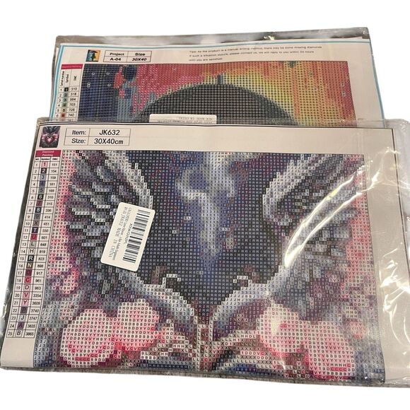 Lot of 2 Full Drill Trippy Diamond Painting Kits Heart Wings & Technicolor Rain