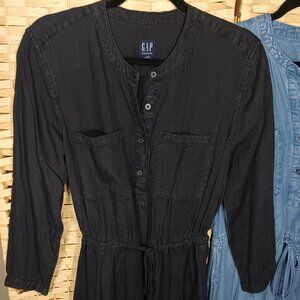 Lot of 2 GAP Long Sleeve Shirt Dress chambray Lyocell Denim Black Tie Waist