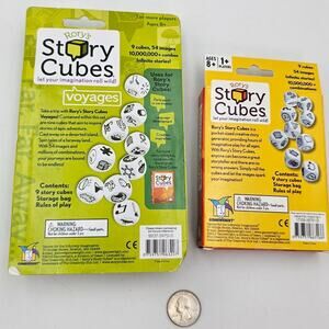 Lot of 2 Games - Rory's Story Cubes by Gamewright - Both are new and sealed in box - boxes have slight wear - Inludes the Voyages Edition ( green ) and original ( orange )