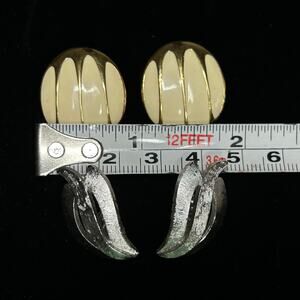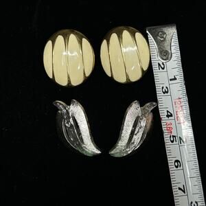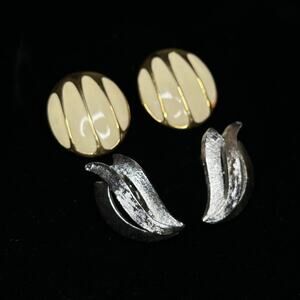 Lot of 2 Goldtone and Cream + Silvertone Clip on Monet Earrings