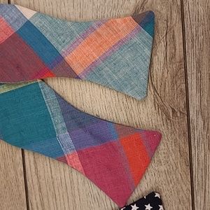 Lot of 2 HIGH COTTON Hand Made North Carolina Plaid Multicolor Cotton Bow Ties
