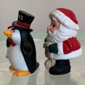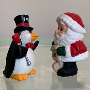 Lot of 2 Hallmark Ornament Merry Miniatures Jingle Bell Santa Valentines Penguin. 1 1/2" Tall. Excellent condition. Crystal Garden 1991 and 1992 Hallmark merry miniatures