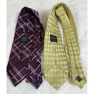 Lot of 2 Ike Behar Ties Luxury 100% Silk Hand Tailored USA Purple 58”/ Green 59”