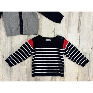 Lot of 2 Jacadi Sweaters Cardigan Blue Stripe Baby Boys Sz 18 M