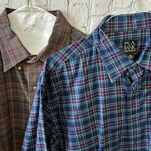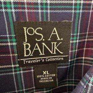 Lot of 2 Jos A Bank Mens Blue Plaid Traveler's Collection Cotton Dress Shirt XL