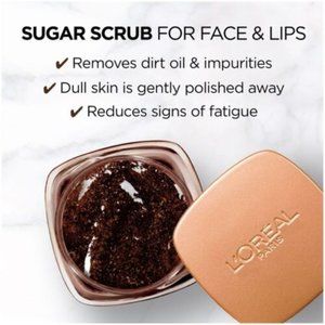 L'Oreal Paris pure-sugar coffee scrub instantly awakens baby soft skin. Made with a naturally derived blend of 3 pure sugars that melts into skin for gentle, yet effective exfoliation and finely ground Kona coffee, almond, and coconut oils. Tired skin looks awakened with reduced signs of fatigue. In 1 week: skin feels baby-soft, smooth, and comforted. Skin is resurfaced with visibly refined texture.