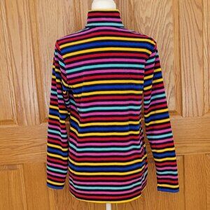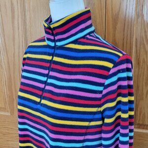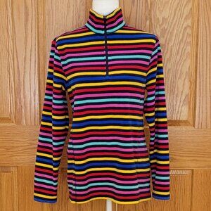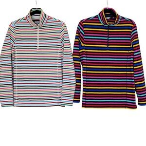 Lands' End Bundle of 2 Vibrant Colorful Striped Quarter Zip Fleece Pullovers