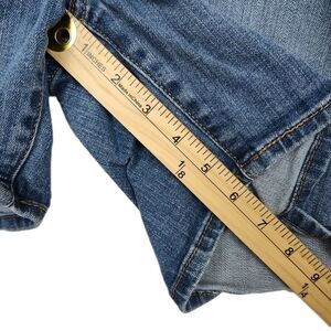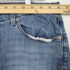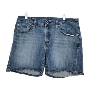 The product is a lot of 2 Levi's women's shorts in size W31, medium wash blue. These shorts feature a solid pattern, zip closure, medium fabric wash, and are made of a cotton blend denim fabric. They have a mid-rise waist with a flat front and a regular fit. The shorts also come with a 5-pocket design and a 6-inch inseam, perfect for a casual and on-trend look.