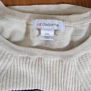 liz claiborne sweater, womens xxl, striped sweater, cowl neck knit, sweater bundle, winter fashion, cozy womens sweaters, classic style, neutral sweater, blue knit top