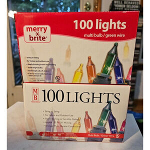 Lot of 2 Merry Brite 100 ct Mini Multi Color Lights Green Wire Christmas Patio
