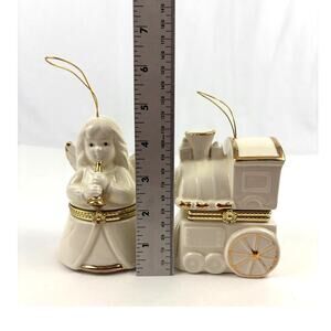 Lot of 2 Mr Christmas Holiday Hanging Ornaments Music Boxes Train and Angel