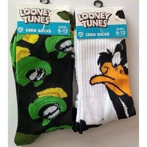 Lot of 2 NEW Pair Looney Tunes Daffy Duck Marvin Martian Socks Adult Size 9-13