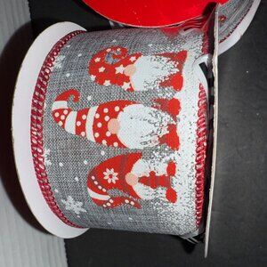Lot of 2 NEW Wire Edged Holiday Gnome Ribbon - 2.5”W x 8.33 yds each