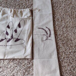 Lot of 2 NEW cloth bread bags for carrying home a baguette and a round or oblong loaf. Colors are off white and brown. Smoke-free and pet-free home.