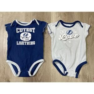 Lot of 2 NHL Tampa Bay Lightning Baby Bodysuits 3-6M - Cutest Lightning Design