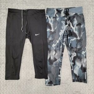 Lot of 2 NIKE Running Dri Fit Women's Twisted Capri Tights Pants SIZE XS Camo Black. Condition is Pre-owned. Still in really good shape. No rips or tears. There is a little mark on the Black pair (glue/chemical??). Take a look at the pictures (zoom in) and measurements please. Thanks for looking. Enjoy the rest of your day. Shipped with USPS Priority Mail