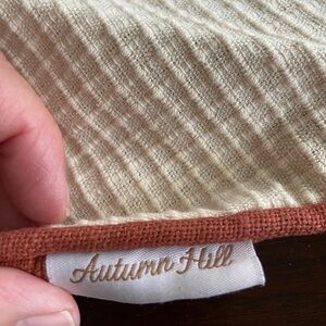 The square one is from Autumn Hill. Woven ivory with a darker pumpkin color back and pumpkin