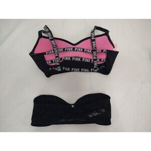 Lot of 2 PINK by Victoria's Secret Size S/P Padded Bra and No Pad Bralette Black