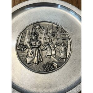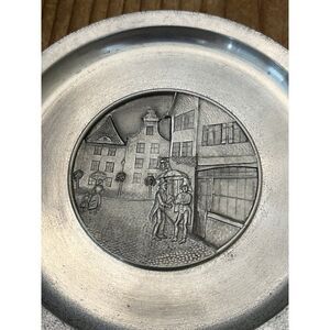 Pewter Wall Plate Germany People Market Buildings Village Fein Zinn Ges Gesch