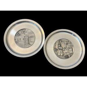 These vintage plates shoe some wear to the pewter as seen in the photos. They have not been polished.