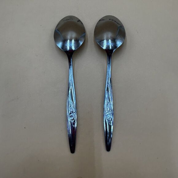 Lot of 2 Pieces Utica Satin Rose Flatware Stainless VTG USA Japan Dinner Spoons