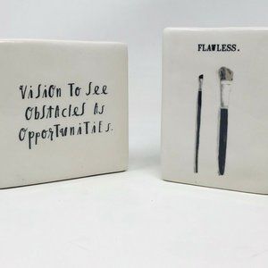 Lot of 2 Rae Dunn - Magenta - “FLAWLESS.” Makeup Brush Holder Artisan Collection and Girl Boss Vision To See Obstacles As Opportunities Decorative Block!