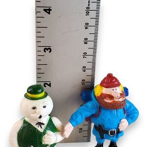 Bring home a piece of Christmas nostalgia with this set of two PVC figures from the classic Rankin/Bass TV special, "Rudolph the Red-Nosed Reindeer." This 2003 set includes the charming narrator, Sam the Snowman, and the boisterous prospector, Yukon Cornelius. These mini-figures are perfect for holiday displays or a collector's shelf.