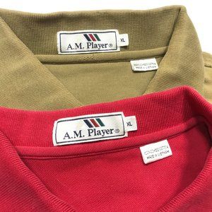 Lot of 2 (Red, Tan) Vintage 90s AM Player Combed Cotton Golf Polo Shirt Mens XL