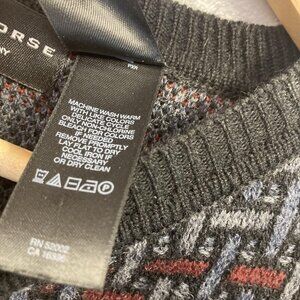 Condition: Pre-owned - Good - Both show light wear from normal use, but the Van Heusen (red) sweater has more wear including light fuzzing / pilling visible in photos; Crazy Horse sweater just shows minor general wear. No obvious holes or major stains seen and ribbed trims remain intact.