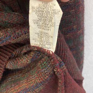 Van Heusen sweater: burgundy/multi-color grid pattern; 100% acrylic; tag reads Made in Mexico; ribbed trim.