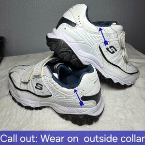 Call-Outs: Wear on collar, scuff on toes and glue from mfg on white pair (9.5). Khaki (10) - none